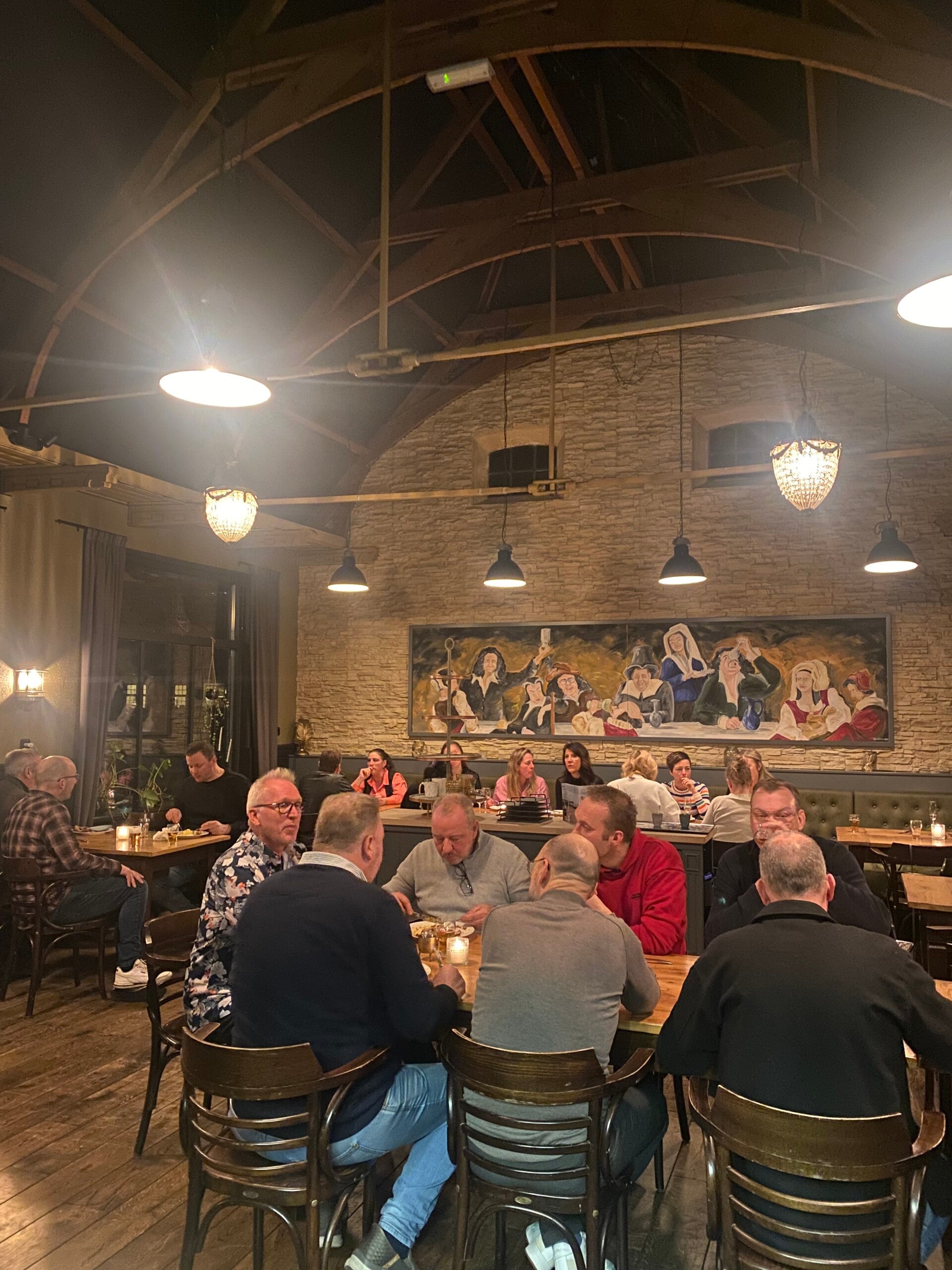 Het begon allemaal met een hartelijk ontvangst door onze gastheer Jan Pieter. Na een welkomstdrankje werden we naar het restaurant geleidt waar we hebben kunnen genieten van een heerlijk DIG Dis. Zorgvuldig samengestelde gerechtjes waren met verve tentoongespreid. Een lust voor het oog en het buffet vond dan ook gretig aftrek. Onze dank naar Jan Pieter is dan ook groot.