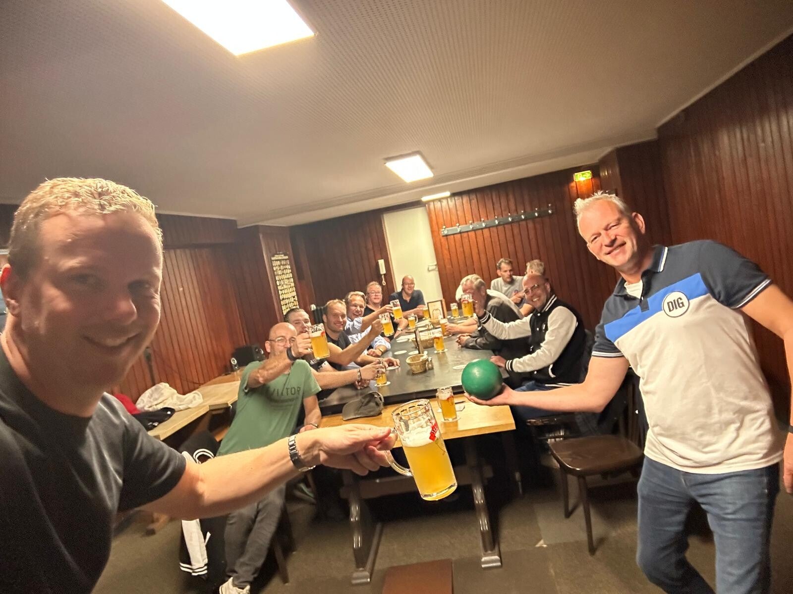 De slagroom op de zaterdag was volgens ons allen de Kegelkeller in Webster Bauhaus. Kegelen op z'n Duits. Kleine balletjes, maar niet minder uitdagend. De strijd werd gewonnen door Mark Brands. De cafe's in Duisburg zijn anders en uiteindelijk zijn we in een homobar beland waar we in de watten werden gelegd met een aantal Hollandse meezingers, maar goed... Duitse meezingers kennen wij ook en 't werd al met al een geslaagde avond en afsluiter van de eerste dag.
